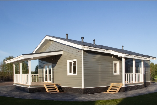 1. При использовании покрытия Colority® Print, «ЭкоБрус GL» достигает максимального сходства с клееным брусом. Надежное скрытое сцепление панелей придает фасаду здания естественный вид.