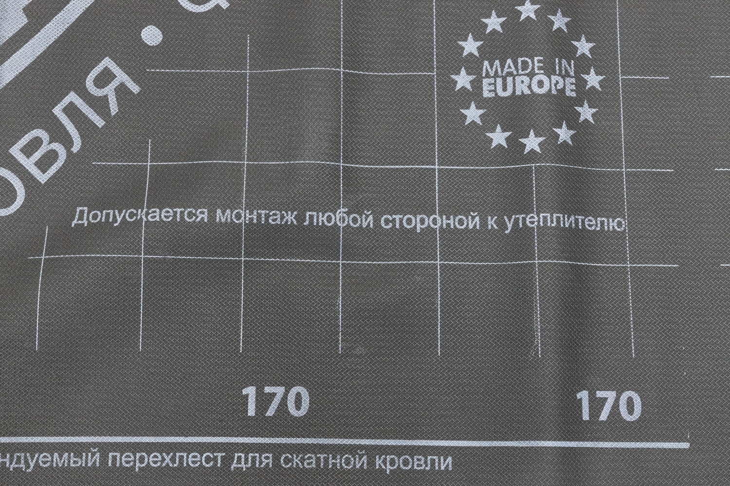 Температурная стабильность : от -40 °C до +80 °C (нагрев при максимальной температуре не дольше 8 часов). Данная пленка не является временной кровлей. Необходимо накрыть кровельным материалом в срок не более 30 дней. Пленка укладывается стороной с логотипом лицом к монтажнику.