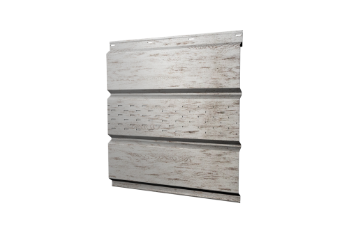 Описание товара: "Софит металлический центральная перфорация 0,45 Print Elite с пленкой Snow Wood TwinColor"